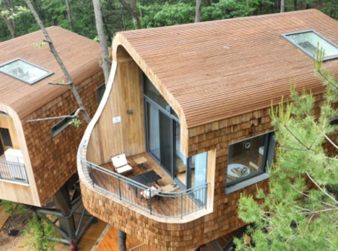 수려한 수락산 자연 속에 독특한 디자인의 트리하우스형 숙소가 조성되어 있어요.