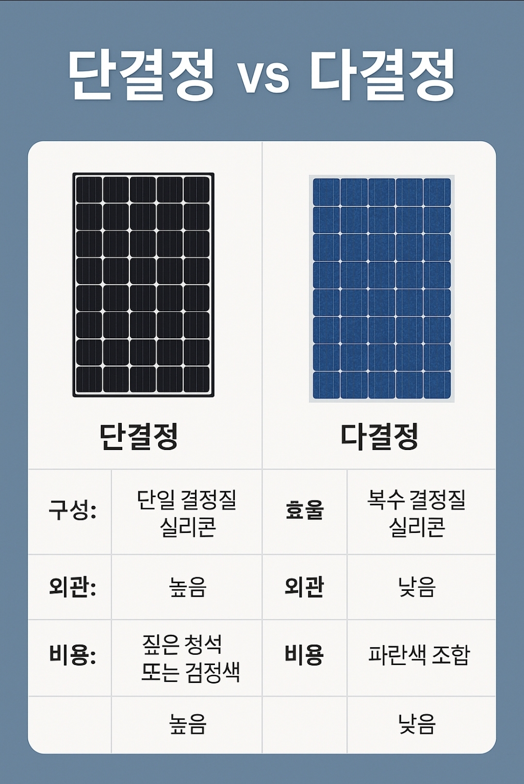 📊 단결정 vs 다결정 태양광 패널 비교표
