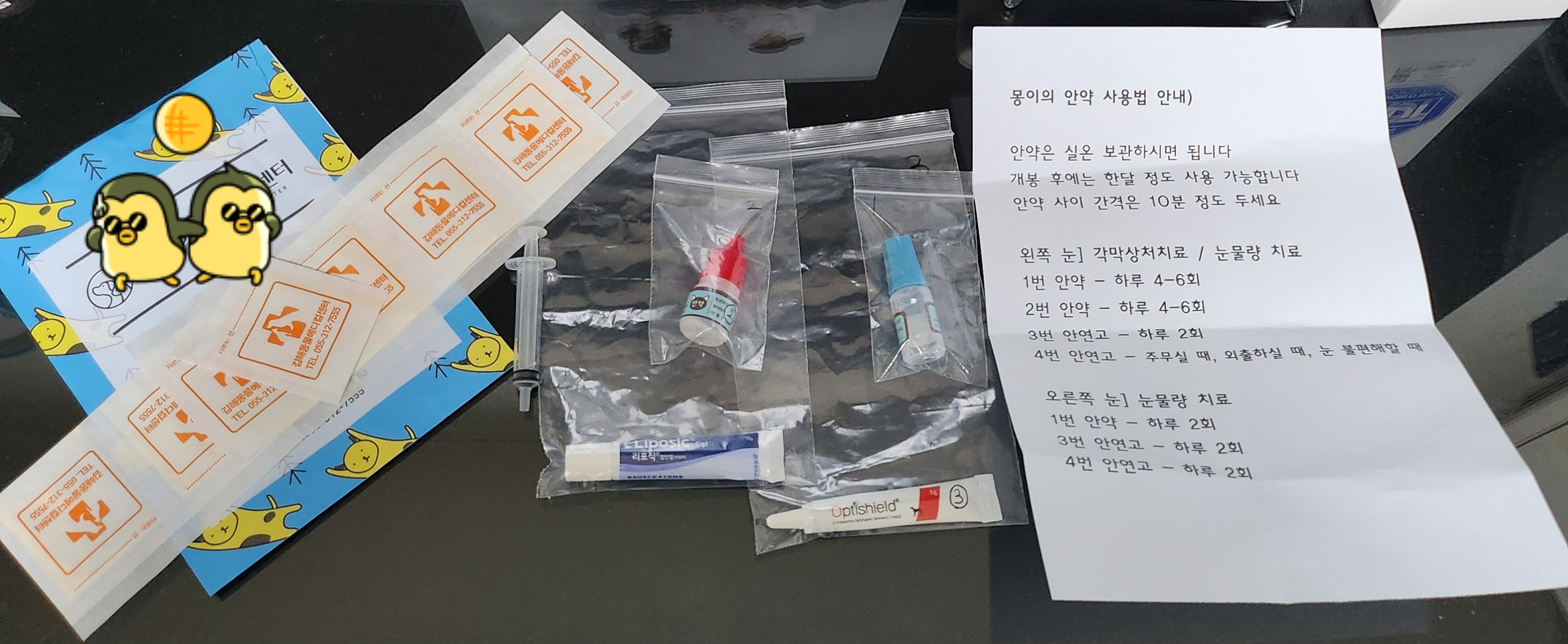 집에 와서 바로 수의사 선생님이 처방해주신 점안제를 사용했어요. 처음에는 강아지가 눈에 약 넣는 걸 싫어했지만, 간식을 주면서 천천히 적응시키니 점점 괜찮아졌어요!