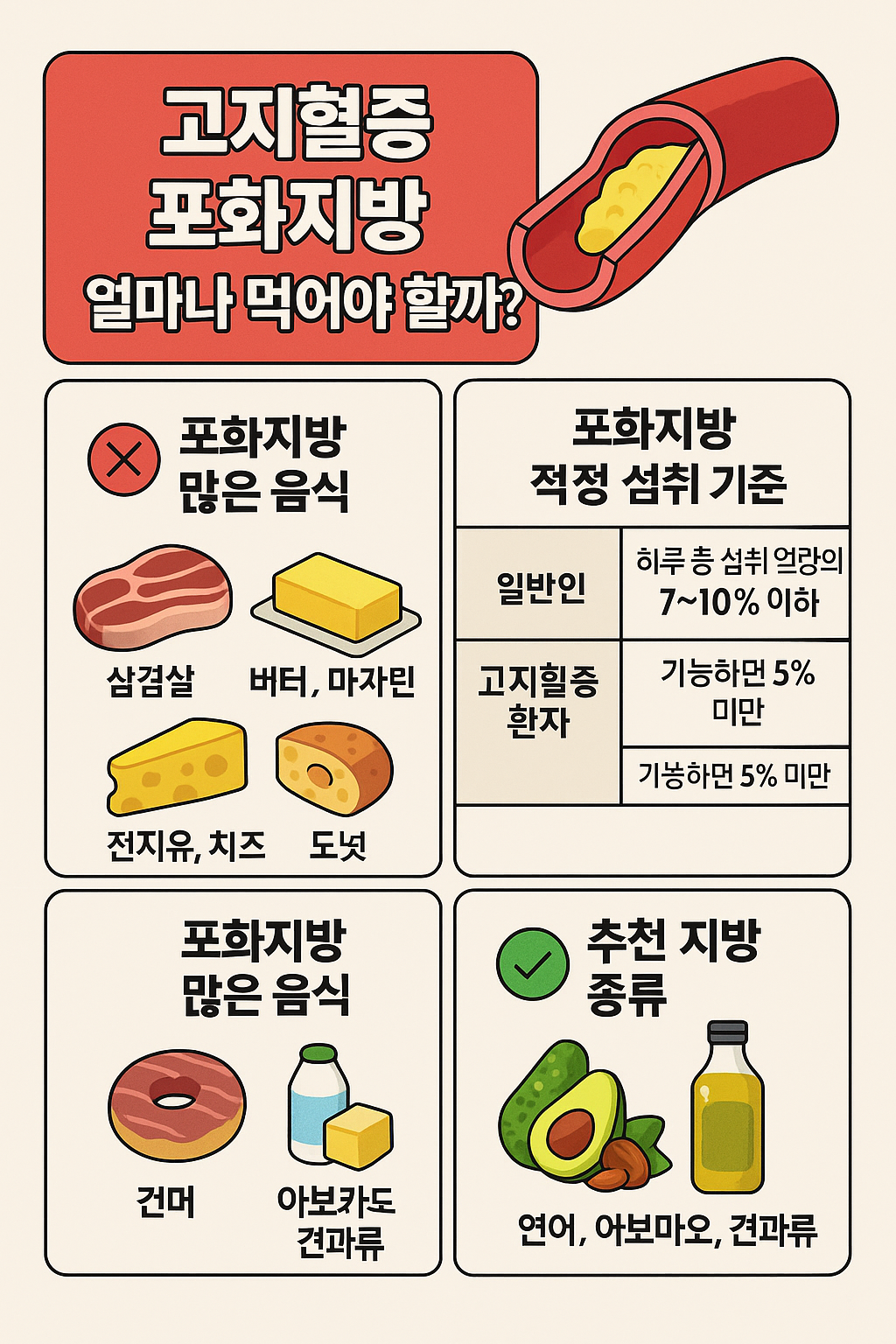 💬 마무리: 포화지방, ‘조금만’ 신경 쓰면 혈관도 웃어요