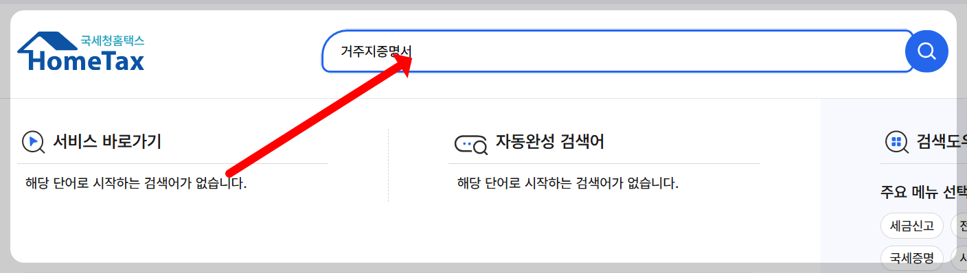 검색창에 거주지 증명서 를 적고 클릭합니다