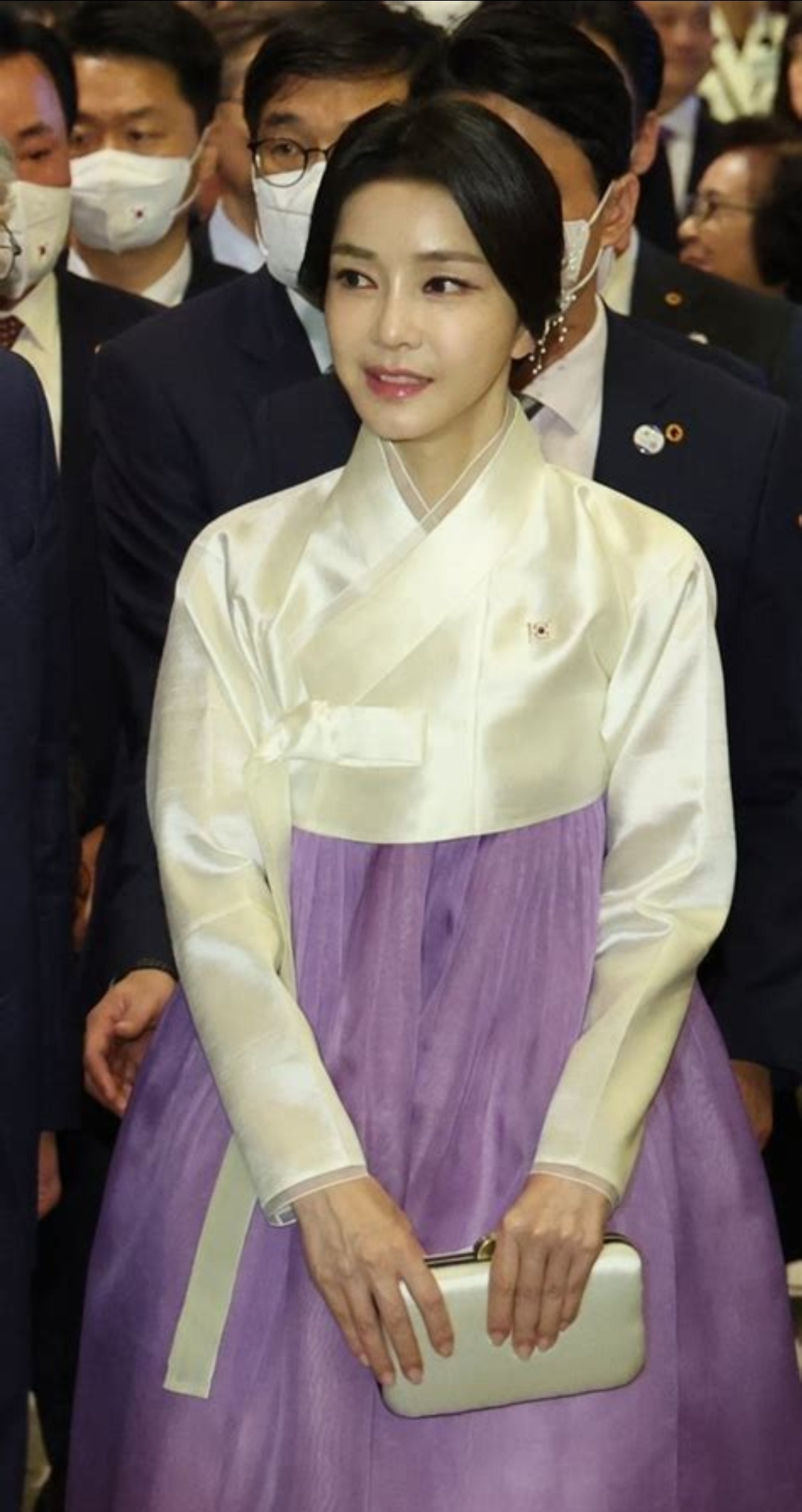 한복과 태극기 배지 착용으로 전통 문화를 강조하는 모습을 보여주며 해외에서도 대한민국을 알리는 데 앞장서고 있습니다.