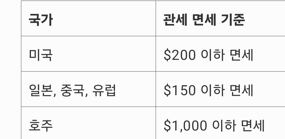 💡 관세는 국가별 면세 기준이 다르기 때문에 꼭 확인해야 합니다.