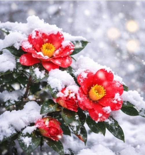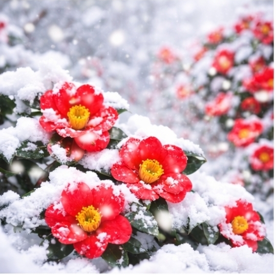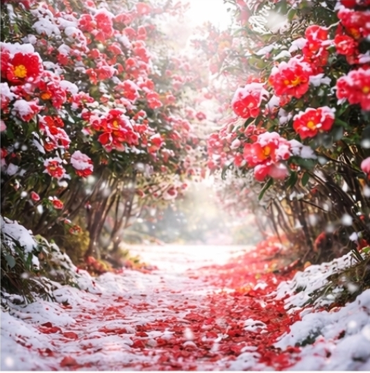 특히 한겨울 눈 속에서 피어난 동백꽃은 다른 계절 꽃에서는 느낄 수 없는 강렬한 인상을 줍니다.