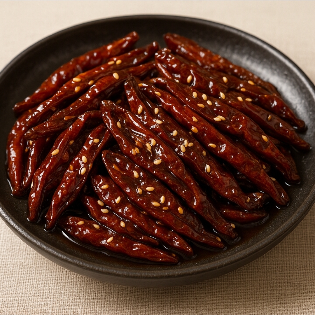 고추의 매운맛과 바삭한 식감이 어우러진 말린고추부각은 전통적인 밑반찬으로 많은 사랑을 받습니다. 튀겨서 그대로 먹어도 맛있지만, 고추부각 간장조림으로 양념하면 짭조름하면서도 밥도둑이 되는 반찬이 됩니다.
