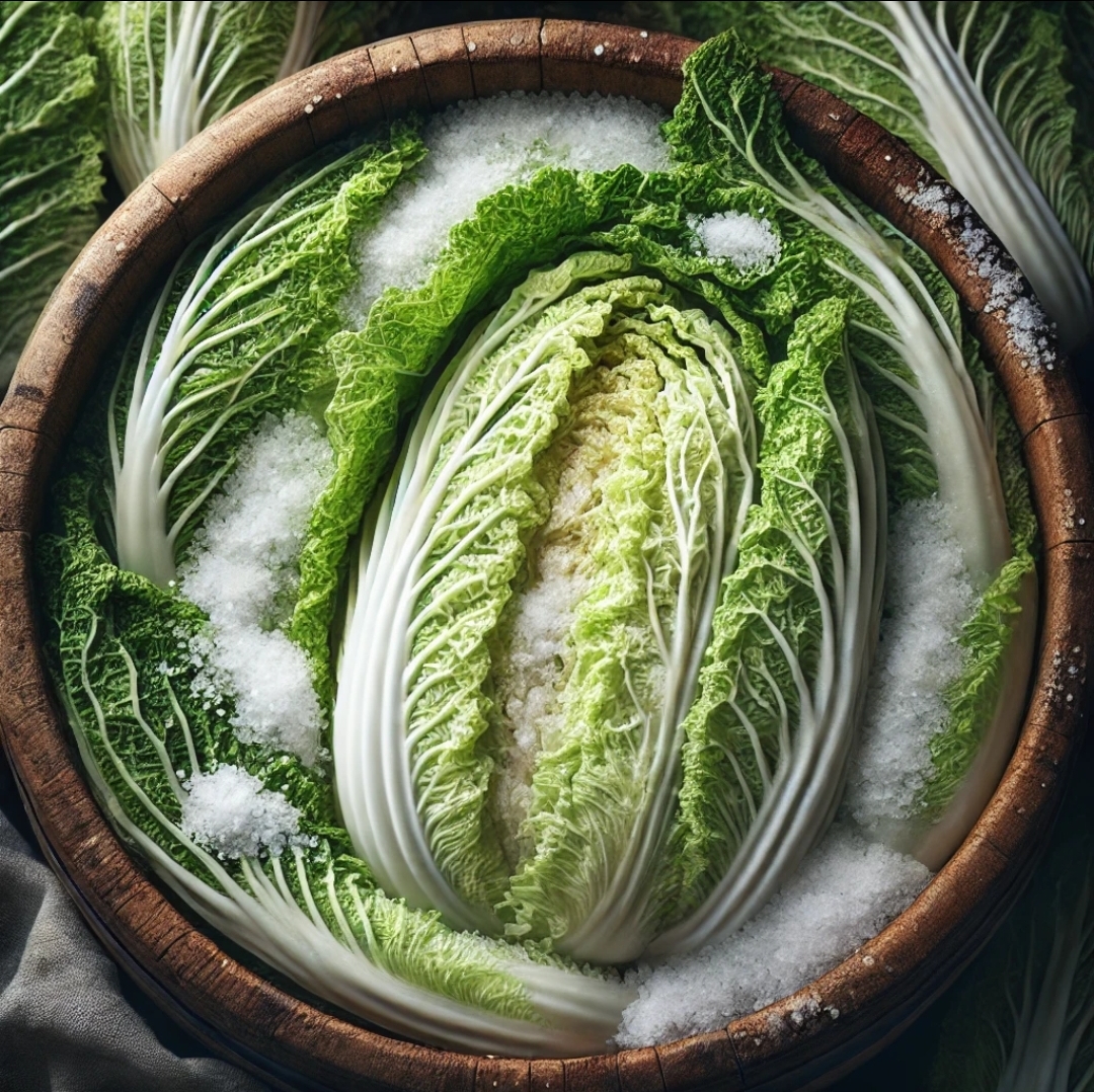 배추 절임은 김치의 아삭한 식감을 좌우하는 중요한 단계입니다. 배추가 골고루 절여지도록 주의해주세요.