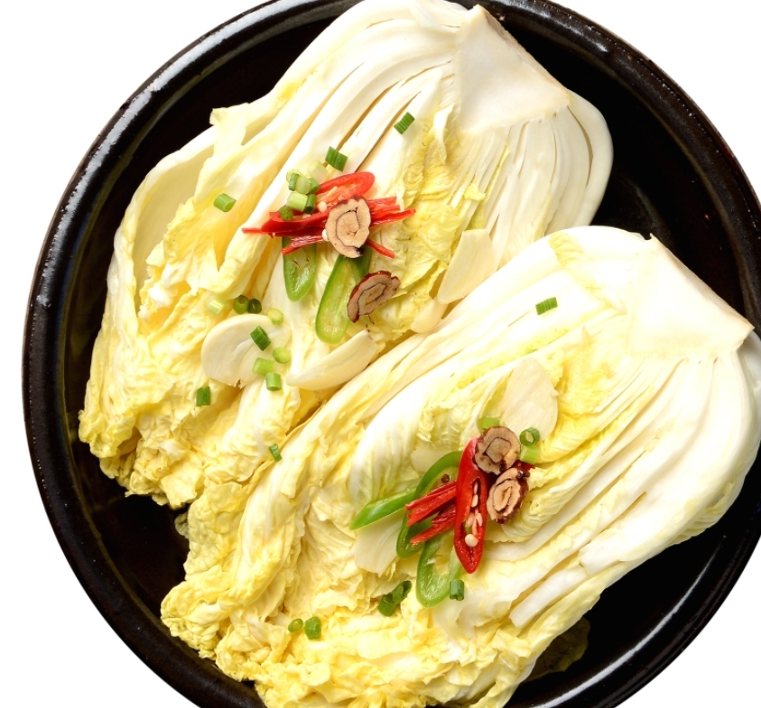 백김치는 국물이 적은 편이며, 담백한 맛을 가집니다. 배추가 발효되면서 부드러운 단맛과 은은한 향이 나며, 매운맛 없이 부드럽게 즐길 수 있습니다.