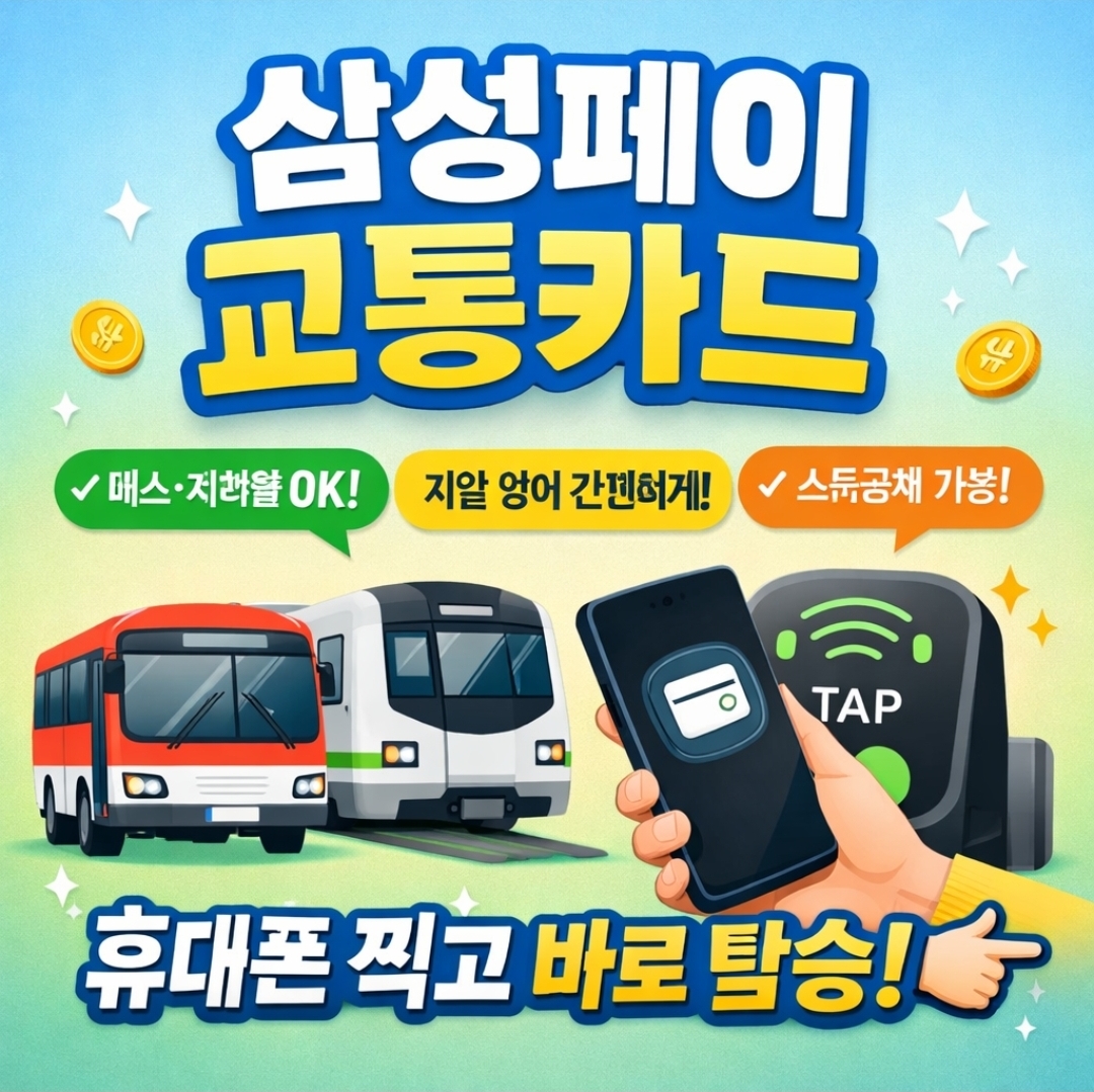 삼성페이 교통카드는 갤럭시 스마트폰에 교통카드를 등록해서 버스·지하철을 휴대폰으로 찍고 탈 수 있는 기능입니다. 지갑 없이도 휴대폰만 단말기에 대면 결제가 됩니다. 🚍📱