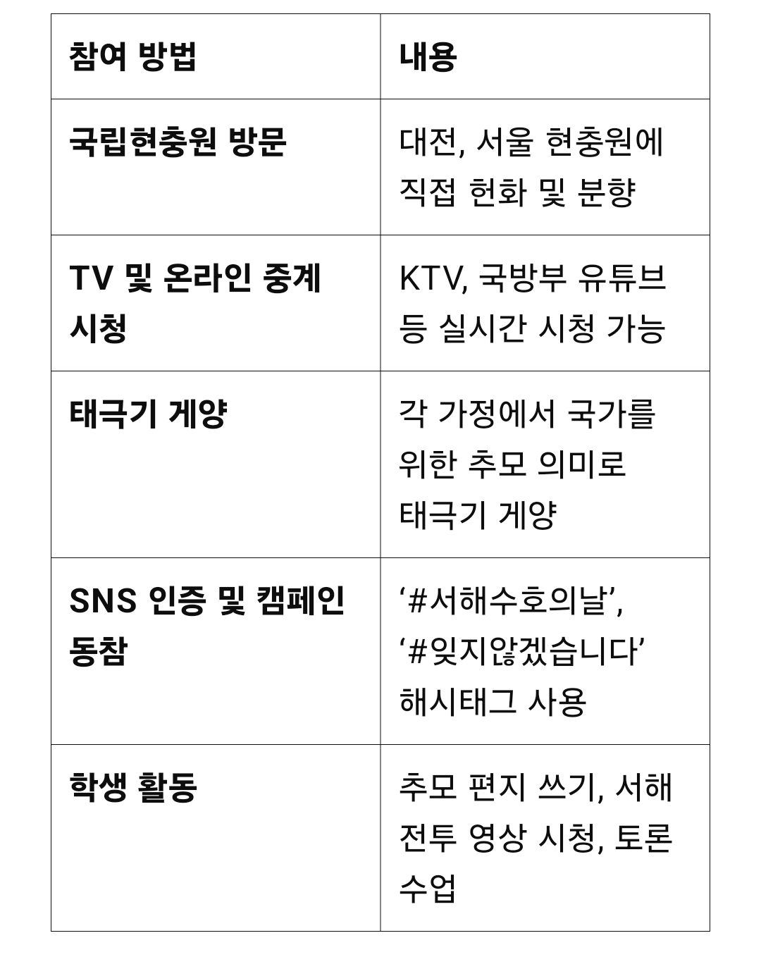 서해수호의 날은 단순한 추모일이 아니라 국민 안보의식 고취를 위한 교육적 기회입니다.