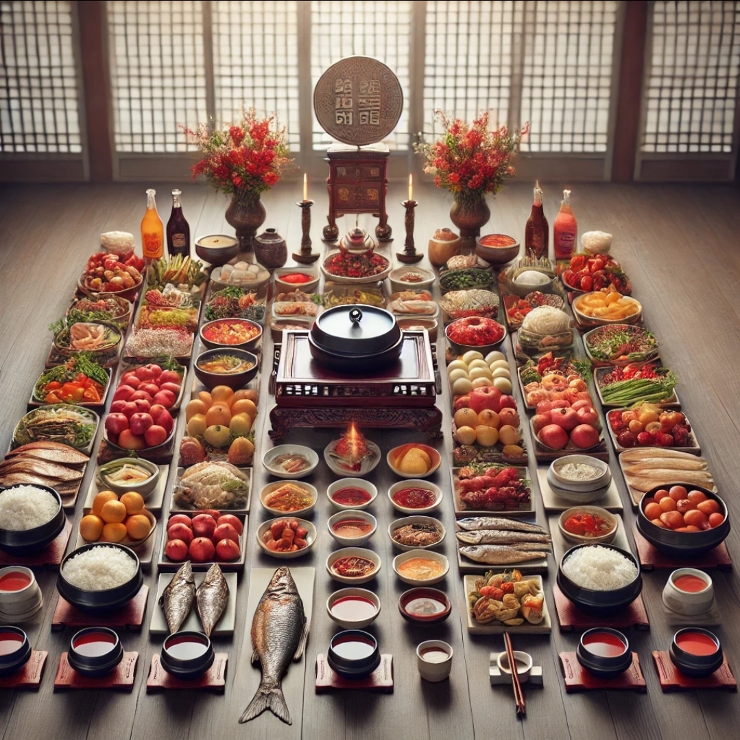 차례상은 전통적으로 5열로 차리며, 각 열에는 특정 음식이 놓입니다.