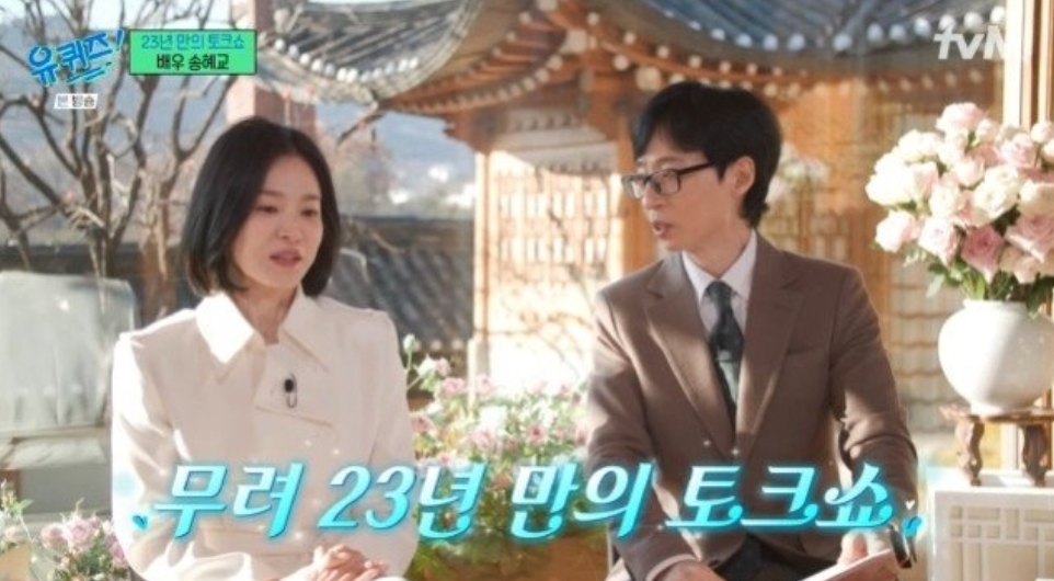 지난 8일 방송된 tvN 예능 프로그램 *‘유 퀴즈 온 더 블럭’*에서는 배우 송혜교가 무려 23년 만에 토크쇼에 출연하며 많은 팬들의 관심을 받았습니다. 이번 방송은 그녀가 넷플릭스 화제작 *‘더 글로리’*로 큰 사랑을 받은 이후 첫 예능 출연이라 더욱 화제가 되었는데요. 송혜교는 방송에서 과거 드라마 *‘가을동화’*에 함께 출연했던 배우 송승헌과의 비하인드 스토리와 유쾌한 에피소드를 공개하며 시청자들에게 웃음을 선사했습니다.