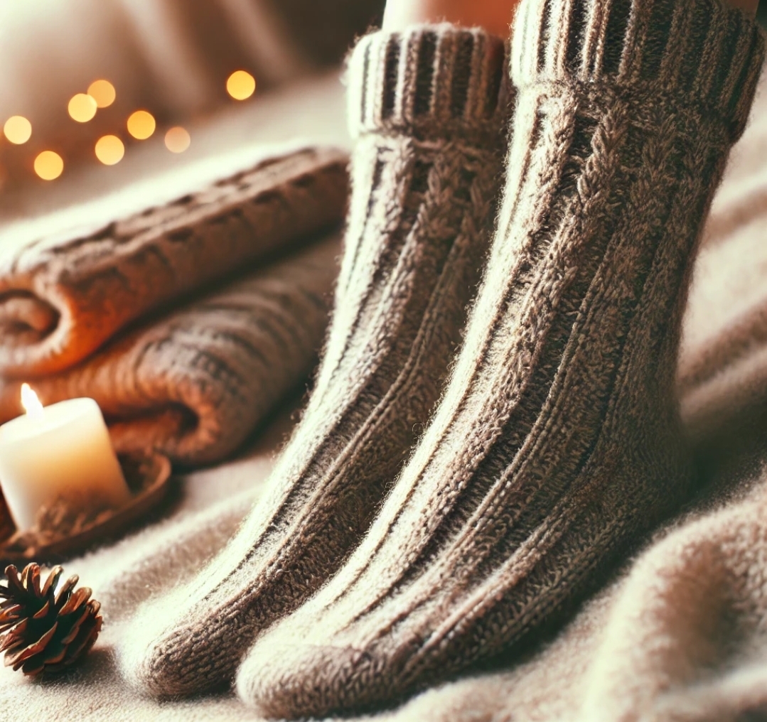 양모(울) 양말: 양모는 자연적으로 보온성이 뛰어나며 습기를 흡수해 발이 젖지 않도록 도와줍니다. 발을 따뜻하고 건조하게 유지하기 위해 겨울철 필수 아이템입니다.