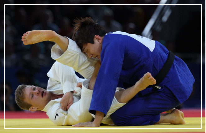 . 그는 각 경기에서 엎어치기와 다양한 기술을