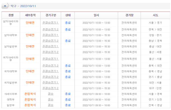 [3] 전국체육대회 - 경기일정.결과 > 종목별 경기일정 (https://meet.sports.or.kr/national/schedule/scheduleClass.do)