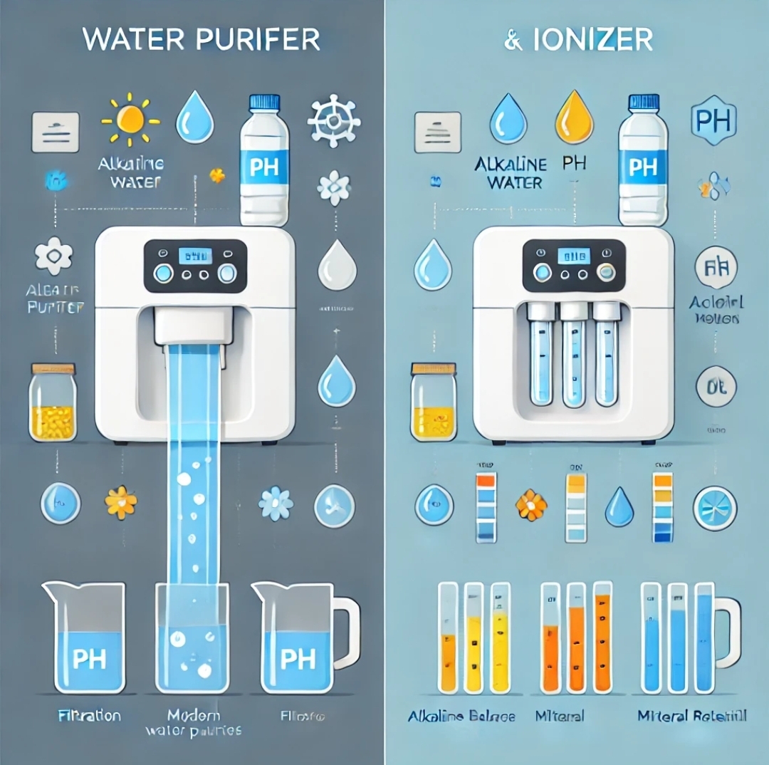 정수기와 이온수기는 모두 물을 정화하거나 특수한 기능을 추가하는 기기이지만, 기능과 목적에서 차이가 있습니다