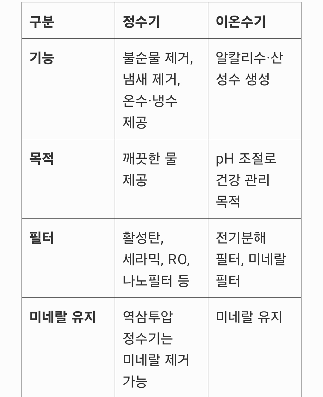 3. 정수기 vs 이온수기 비교