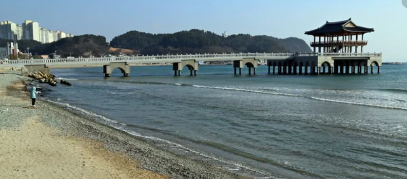 포항의 대표적인 해수욕장으로, 일출 이후 여유롭게 산책하기 좋은 장소입니다.