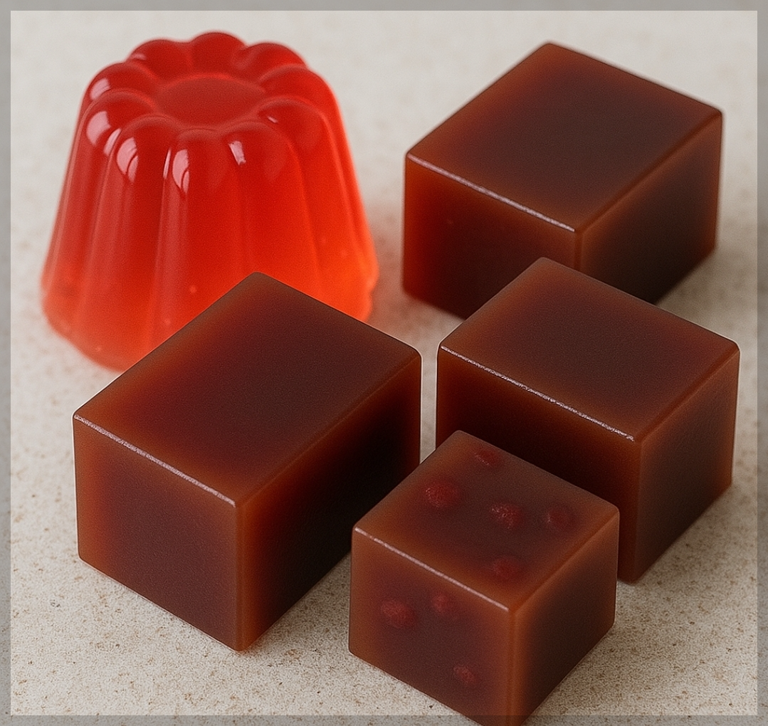 젤리는 ‘판 젤라틴’과 ‘가루 젤라틴’ 두 가지 형태로 나뉘며, 사용 시 주의사항도 다릅니다.