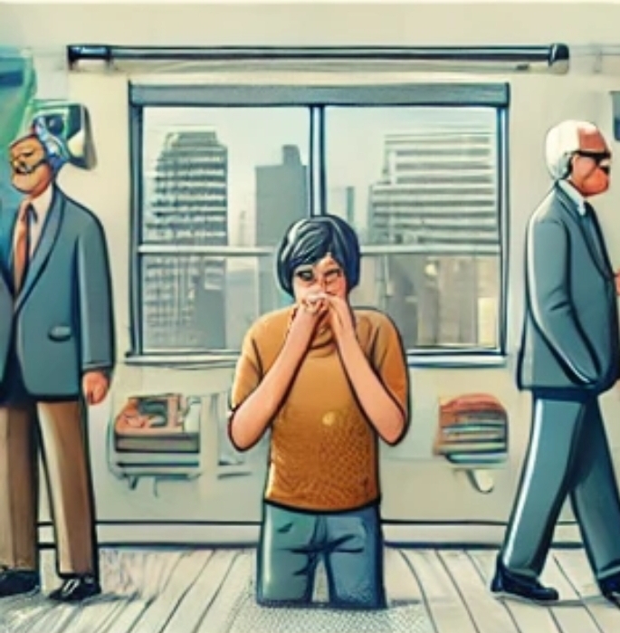 기침할 때는 손이 아닌 팔꿈치로 입과 코를 가리기