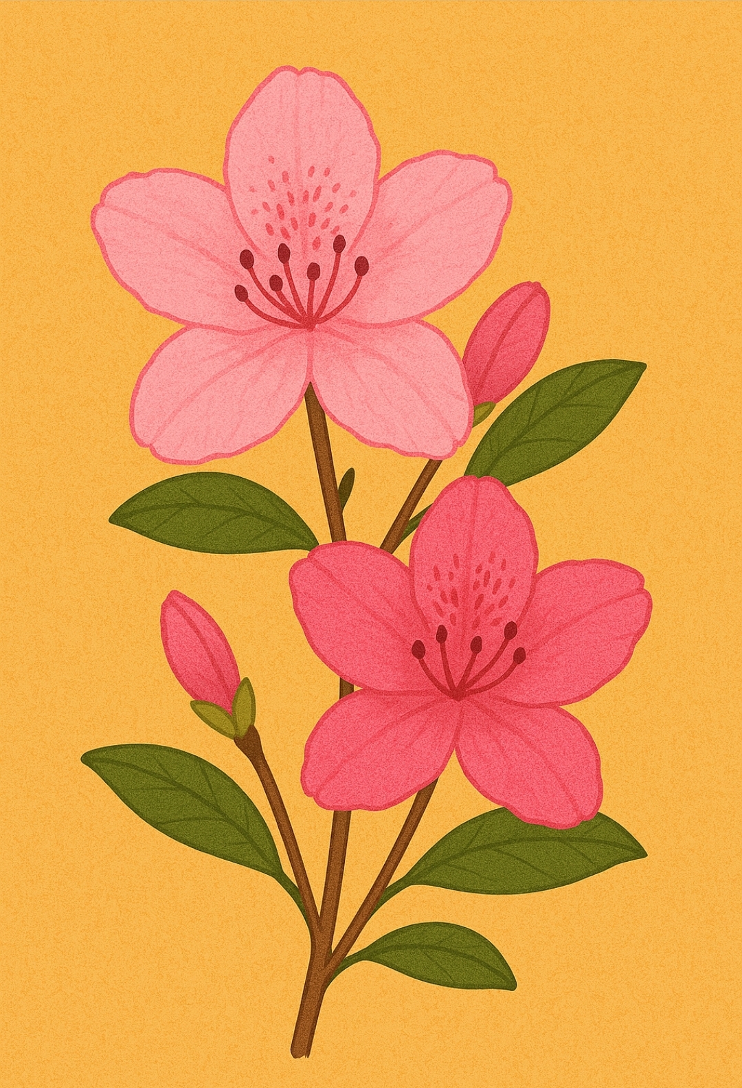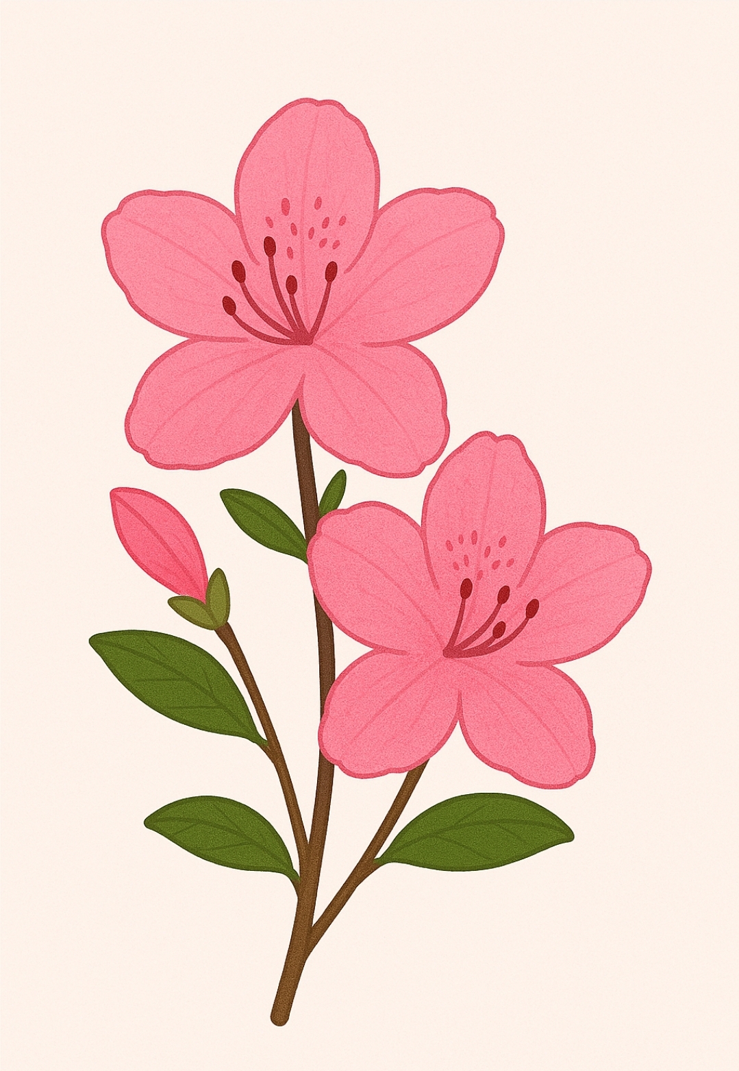 철쭉은 진분홍, 자주색, 흰색 등 더 진한 색상으로, 보다 선명하고 강렬한 인상을 줍니다.