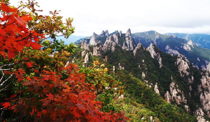 설악산은 우리나라에서 단풍이 가장 먼저 시작되는 곳 중 하나입니다. 케이블카를 타고 권금성 전망대에 오르면 시원한 가을 바람과 함께 울긋불긋한 단풍이 한눈에 들어옵니다. 속초 시내와 동해 바다까지 동시에 감상할 수 있어 가을 산행과 풍경 여행을 동시에 즐길 수 있습니다