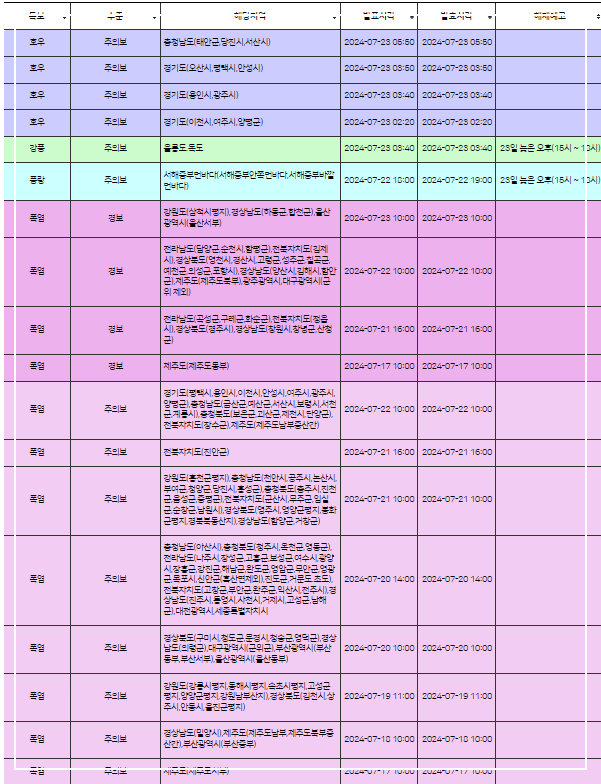 - 지역에서는 60mm 이상의 강우가 예상됩니다.