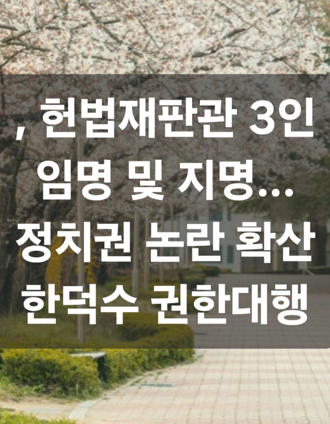 2025.04.08 - [이슈정보 문화] - 헌법재판관 3인 임명 및 지명…정치권 논란 확산 한덕수 권한대행