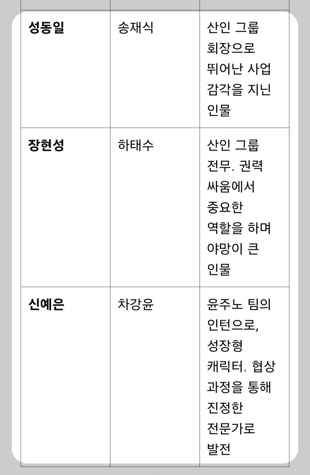 윤주노는 뛰어난 협상 전문가로, 다양한 기업의 인수합병 과정에서 활약하는 인물입니다.