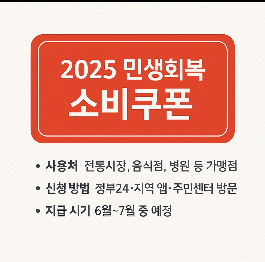 2025.06.24 - [경제와사회] - 🎁 2025 민생회복 소비쿠폰 사용처, 신청 방법, 지급 시기 총정리