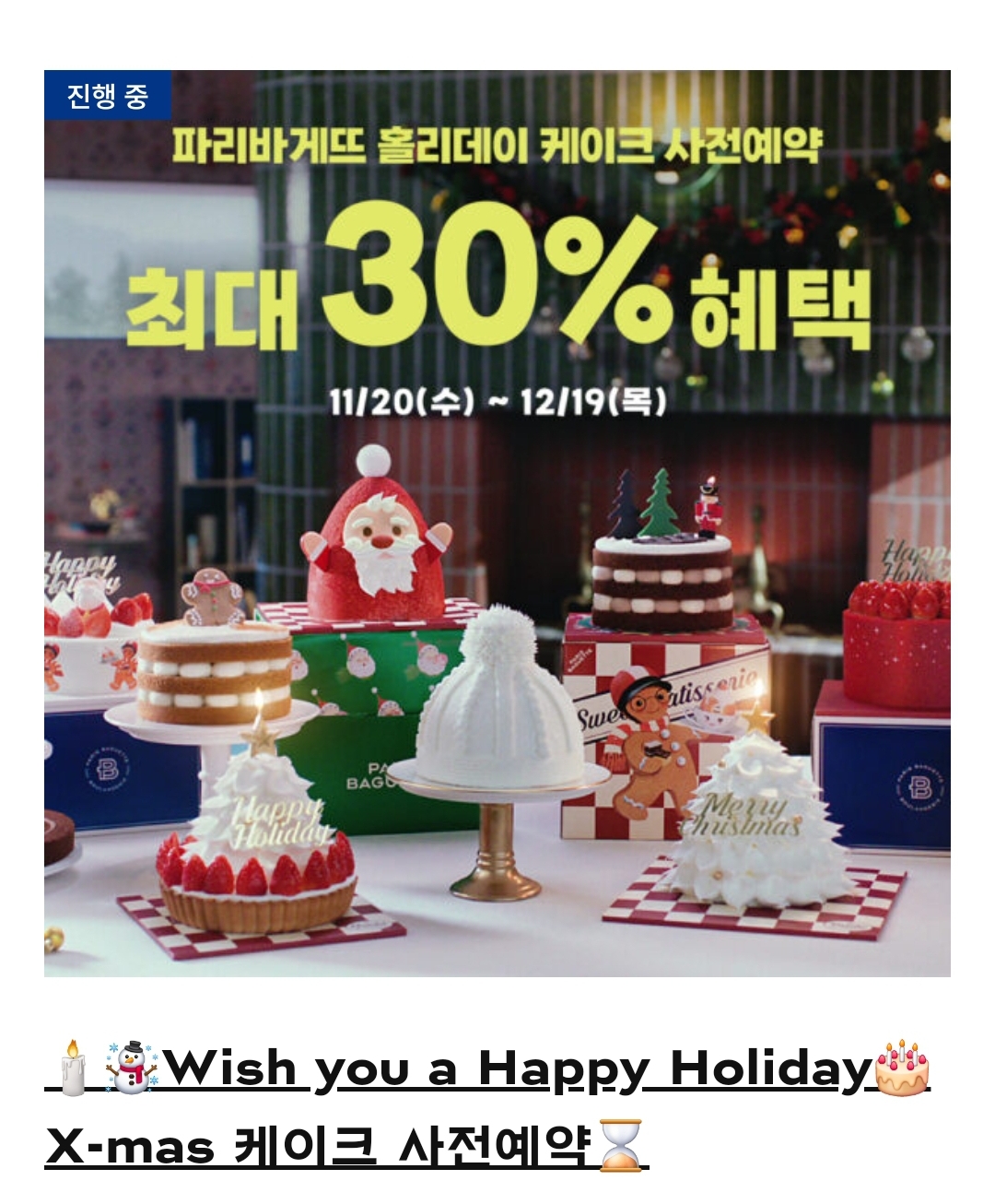 대표 크리스마스 케이크 2종에 한해 20% 할인 쿠폰 제공 (선착순)