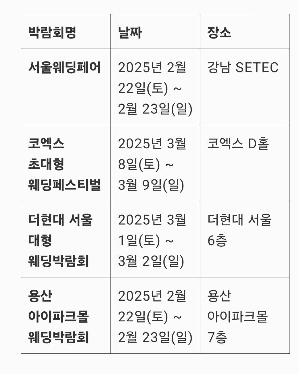 ✅ 2025년 서울 웨딩박람회 주요 일정