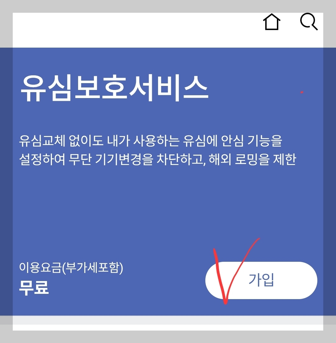 로밍 요금제를 사용하는 경우, 유심보호서비스 가입이 불가능합니다.